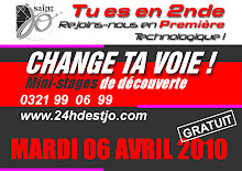 La deuxième session des mini-stages trouve ta voie a eu lieu ce mardi 16/02 2010 au lycée Saint Joseph. Encore une fois, ce sont une bonne cinquantaine de collégiens issus de 20 collèges de la région qui sont venus découvrir nos formations technologiques. Une journée qui a ouvert bien des yeux et qui, nous l’espérons, suscitera des vocations. Merci aux 20 professeurs ainsi qu'aux élèves et étudiants qui ont donné de leur temps bénévolement pendant les vacances pour accueillir ces jeunes ...